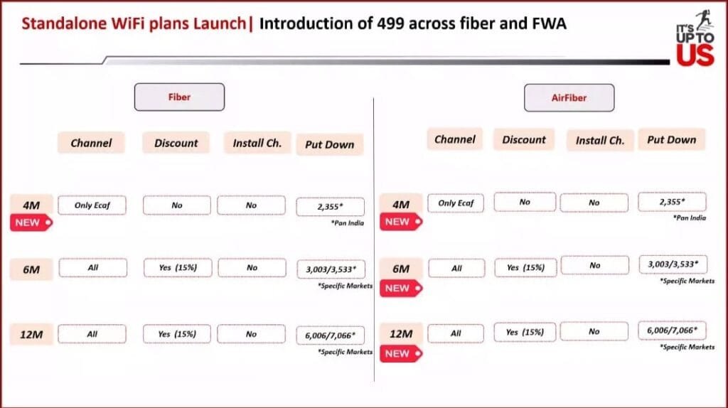 Standard Wi-Fi plans can also be considered costing Rs. 799 per month.